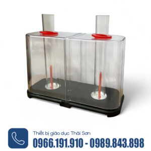 – Hộp có hình hộp chữ nhật, kích thước (240x150x360) mm dày 3 mm, chất liệu không bị nóng chảy khi làm thí nghiệm có đốt cháy. Nắp hộp có kích thước (150×360)mm và có 02 lỗ Φ44 mm. Nắp hộp có thể mở/ tháo ra để đưa đĩa, nến vào bên trong một cách thuận lợi. Khi đậy nắp cần đảm bảo độ kín. Mặt trước hộp cần trong suốt.